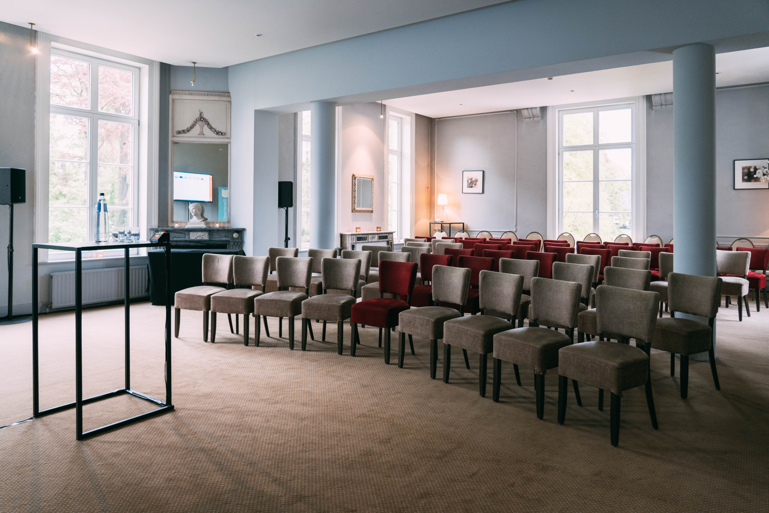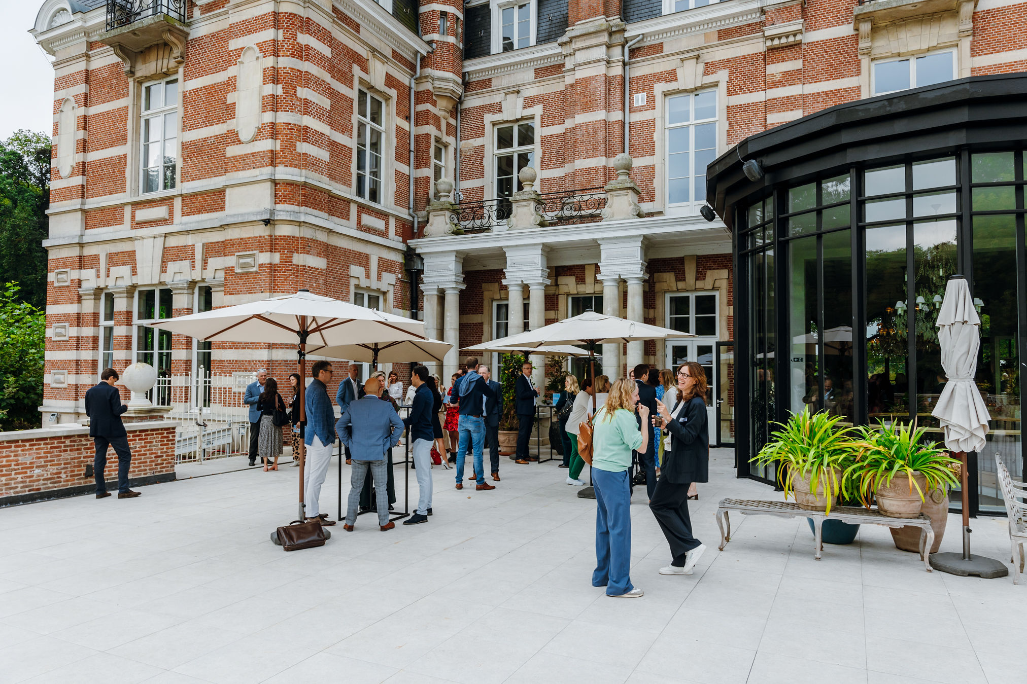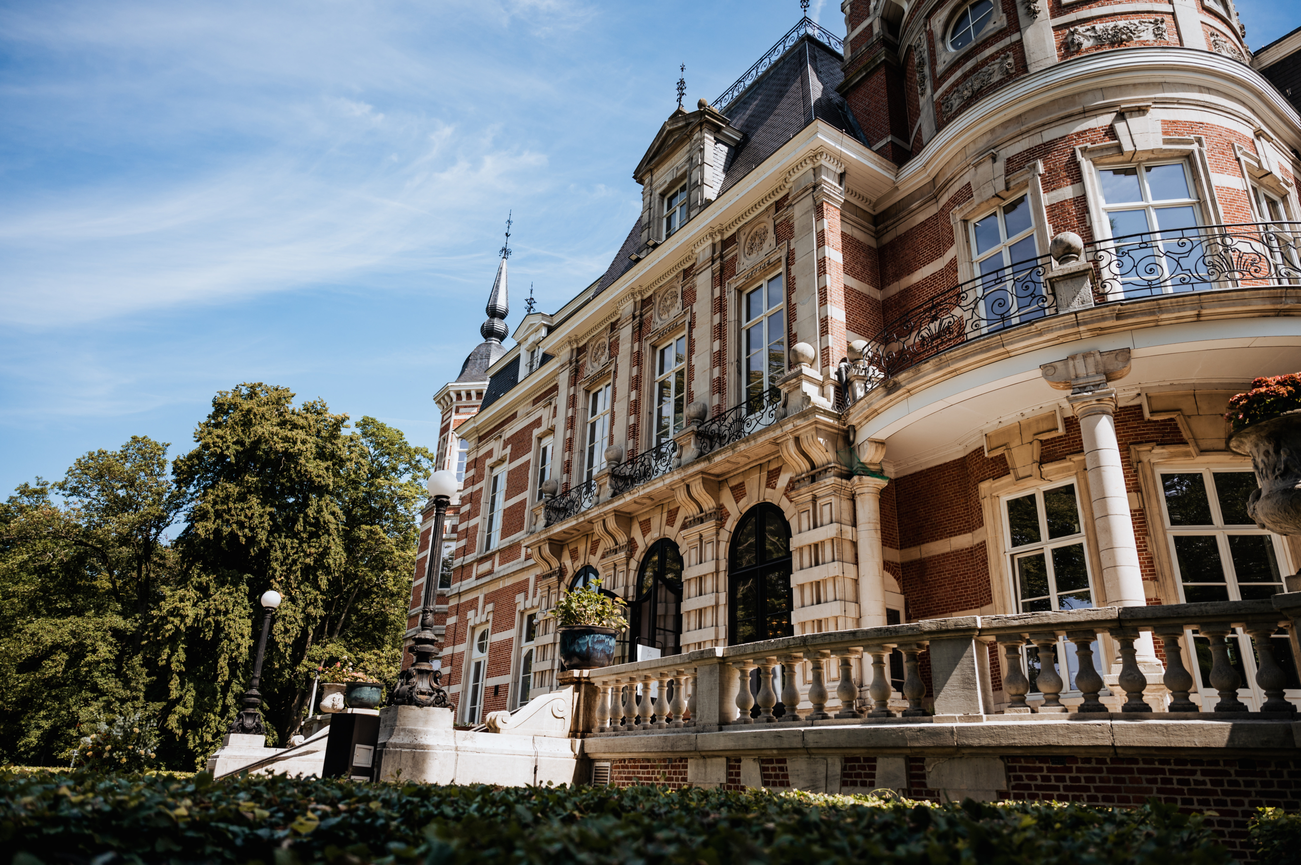 Omgeven door het bosrijke Park van Brasschaat met vijvers, fonteinen en een unieke rozentuin is het Kasteel de perfecte setting voor uw feest. Het Kasteel heeft 7 prachtige zalen, van een majestueuze inkomhal, tot zonnig terras en grote zaal, beide met zicht op de vijver.